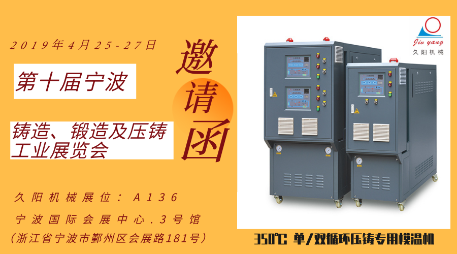 銷售熱線:13923865819 服務(wù)承諾2019第十屆寧波鑄造、鍛造及壓鑄工業(yè)展覽會將于4月25日~27日在寧波國際會展中心3號館隆重舉行。作為浙江省唯一的鑄造行業(yè)盛會,本次展會共有國內(nèi)180多家展商展示最新的技術(shù)和設(shè)備,展覽面積近1萬平方米,達歷史最高水平。深圳市久陽機械設(shè)備有限公司作為壓鑄行業(yè)知名模溫機廠家…